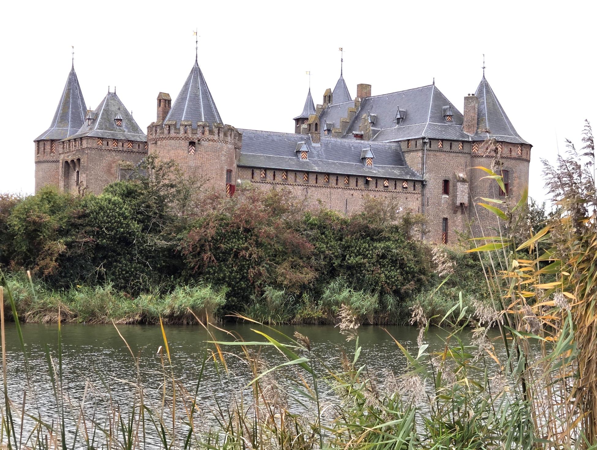 DetailsEenmaal in Naarden laten we de Gooise stuwwal definitief achter ons en maken we kennis met het kustlandschap van de voormalige Zuiderzee. Nou ja, niet helemaal, want bij Muiderberg stuiten we zomaar op een keileembult aan de kust. Om te beginnen gaat de wandeling over de fraaie wallen van de Naardense vesting. Vanaf de hoge graspaadjes op het dak kijk je uit op de grachten en aan de andere kant op de loodsen, munitiedepots en soldatenverblijven. Na de vestingronde zoeken we bij de Amsterdamsestraatweg het gras van de zeedijk op. Op de eerste twee kilometers is de nabijheid van de snelweg niet te ontkennen, maar eenmaal op de Westdijk kan worden genoten van een Hollands polderlandschap. We wandelen het Naarderbos in. Voorheen was hier een golfbaan, maar na het faillissement in 2018 zijn de greens verruigd. De gemeente zoekt een nieuwe exploitant, dus laten we hopen dat de verrassende wandelpaadjes toegankelijk blijven. Via het Voorland van de Hollandse Brug leidt de route Muiderberg in. We volgen de waterkant over de klif en langs het strand, met zowaar een heus strandpaviljoen. Zonder dat je het merkt wandel je het dorp uit. We volgen de stoere zeedijk richting Muiden. Het langgerekte eilandje Hooft is duidelijk zichtbaar, om het ovale forteiland Pampus te ontwaren moet je wat meer je best doen. Maar bij het verlaten van de zeedijk trekt al snel het imposante Muiderslot alle aandacht. De vierkante waterburcht in de monding van de Vecht heeft op iedere hoek een ronde toren, precies zoals een middeleeuws kasteel hoort te zijn.