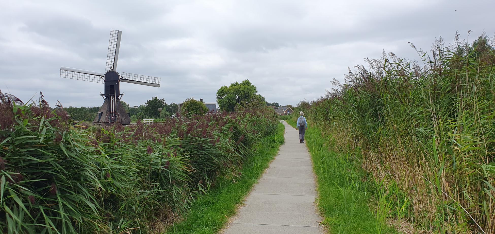 DetailsDeze wandeling voert je door het hart van Woerdense Verlaat, langs eeuwenoude waterwegen, een molen en weidse polders. Bij de start staat het beeld Smid met Wagenwiel, een herinnering aan het ambachtelijke verleden van het dorp. Via de Kollenbrug betreed je het landschap van de Kromme Mijdrecht, een rivier die zich sierlijk door het veen slingert. De route leidt je over de Westveensekade, langs de monumentale Westveense Molen, en vervolgens de Polder Westveen, een natuurgebied van Natuurmonumenten waar rietmoeras, bloemrijke graslanden en zeldzame vogels samenkomen. Je wandelt over stille betonpaden en graskades, met uitzicht op boerderijen, watergangen en het karakteristieke veenweidelandschap. Onderweg kom je langs het Pietersenpad, een historisch pad dat ooit met een pontje werd verbonden.